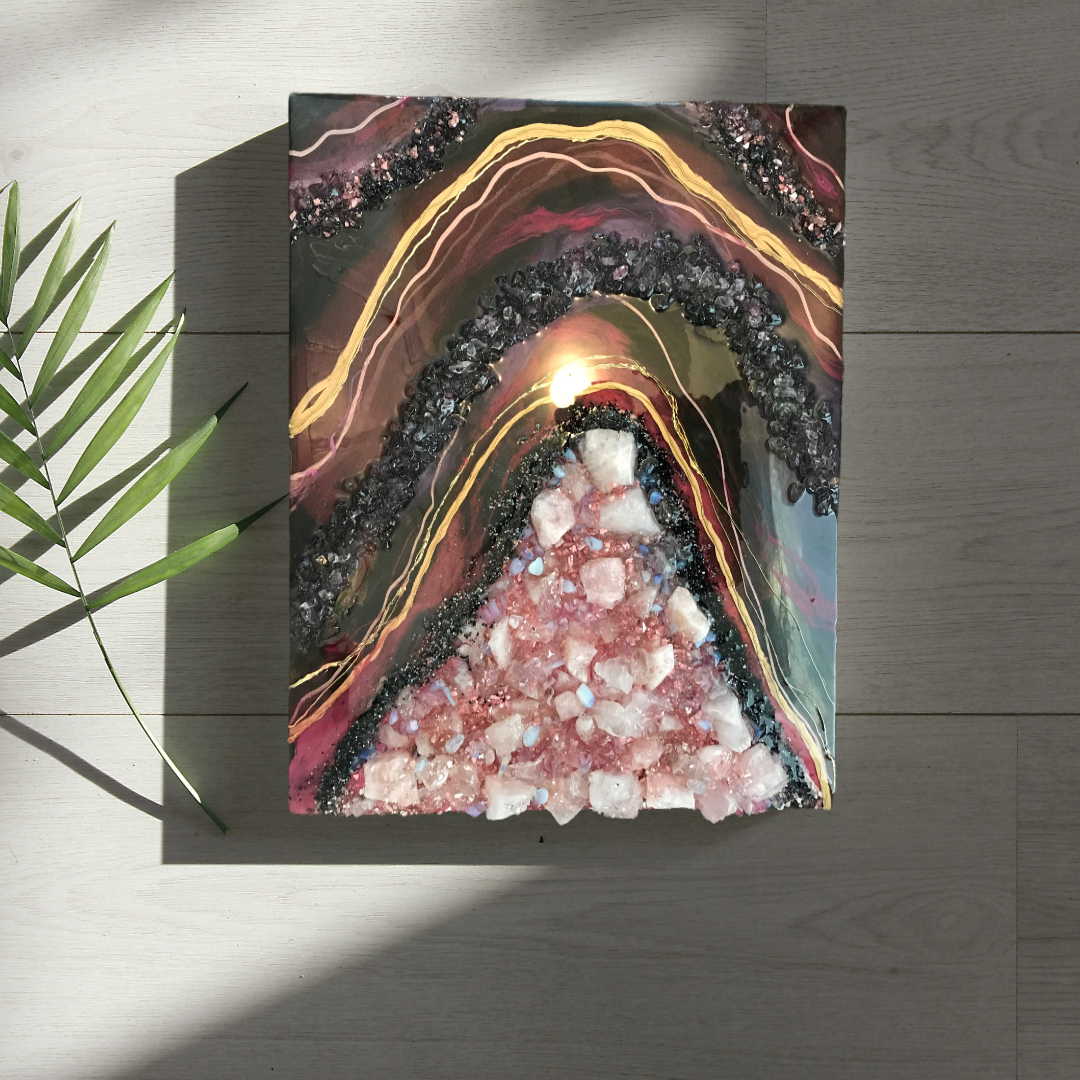 A blend of various artistic mediums to create one-of-a-kind pieces that are rich in texture and depth.